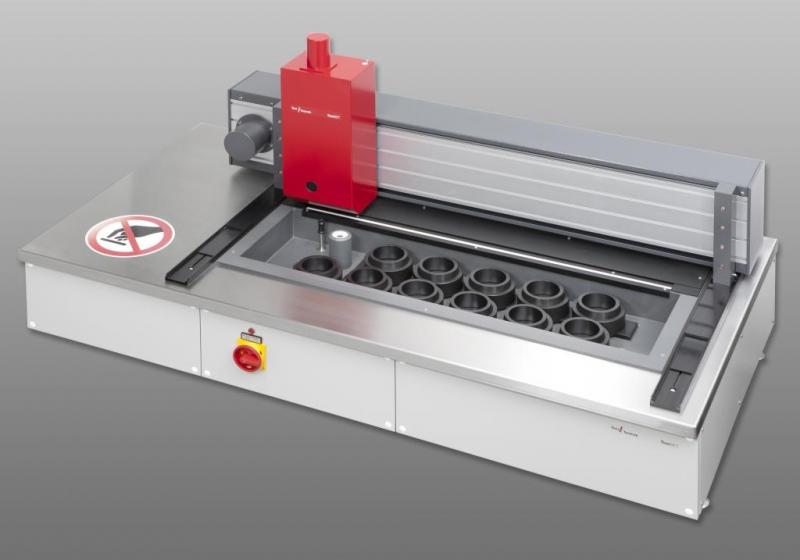 Automated machine to determine setting time of several different materials. Pictured above is the model 7301, single station machine, at right top the 7306, 6 station machine (most popular) and at right bottom the 7322, 12 station machine for testing 12 unique samples at a time.